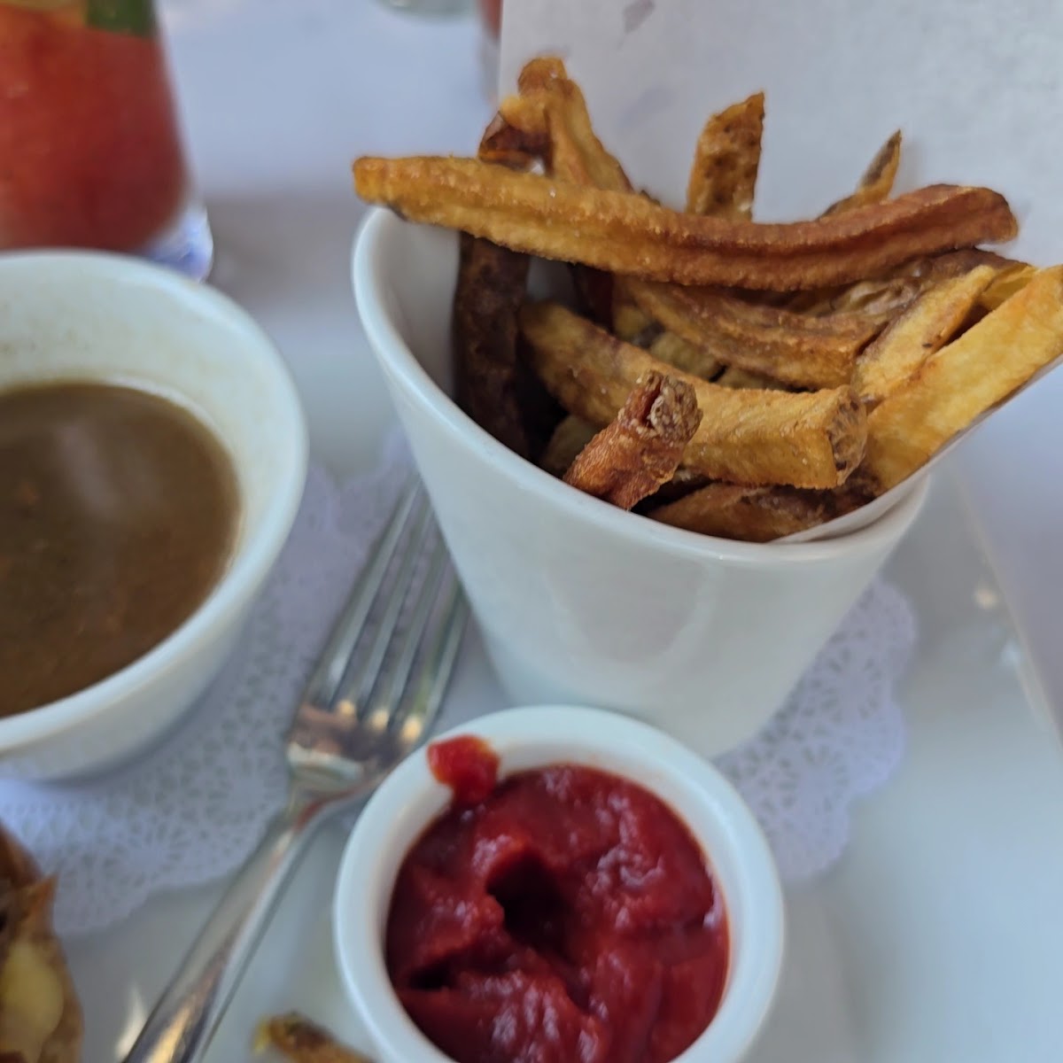 I hadn’t been to this restaurant in years and was excited when I walked in. It was absolutely gorgeous!!! Service- we had Sue and she was m great and I have to say I don’t normally do this, but I had to report on their soup. They had a special Pea soup of the evening it had a special name like emerald something. It was so good that I bought an extra container to go home with!!! I cannot tell you how delicious it was and then randomly the Chef came out and introduced himself. He was completely lovely and genuinely happy when I was Fan girling over the soup. I will definitely go back. It will become a favorite haunt. I also can’t recommend enough the short-rib quesadillas with a horseradish dipping sauce, it was good enough to eat without the sauce, but the sauce was amazing This is definitely a restaurant I am excited about- I’m sorry I didn’t eat here sooner. All my thumbs up!