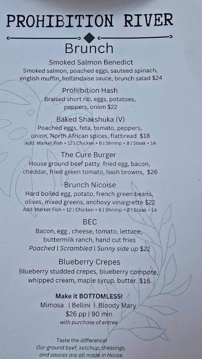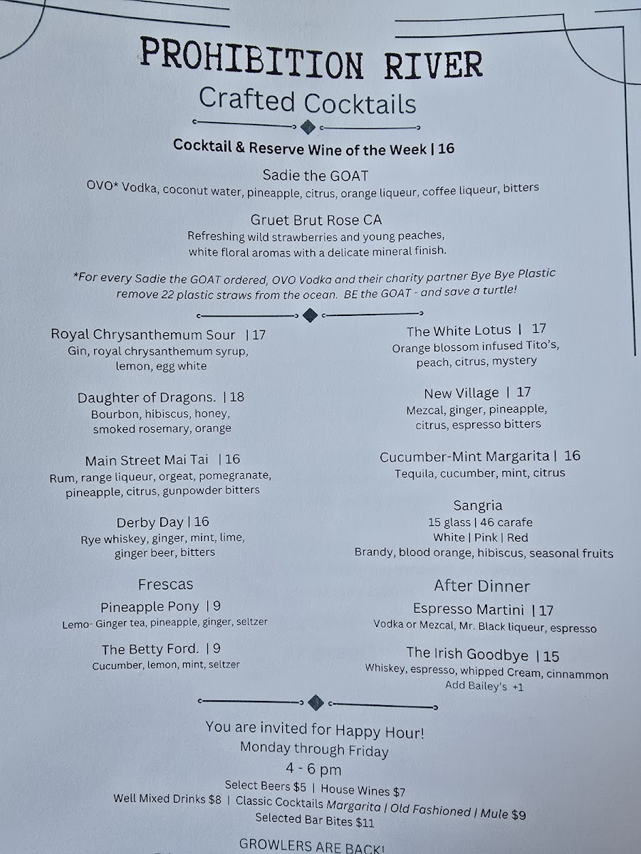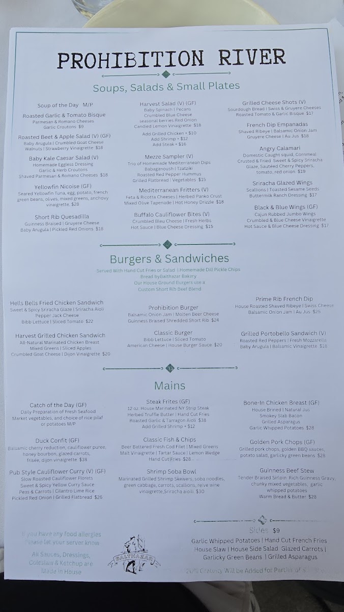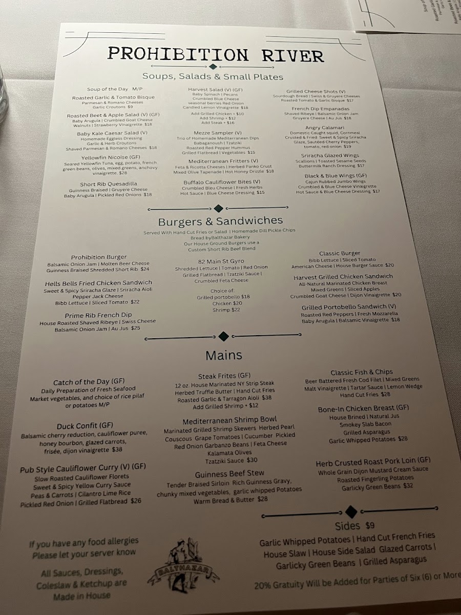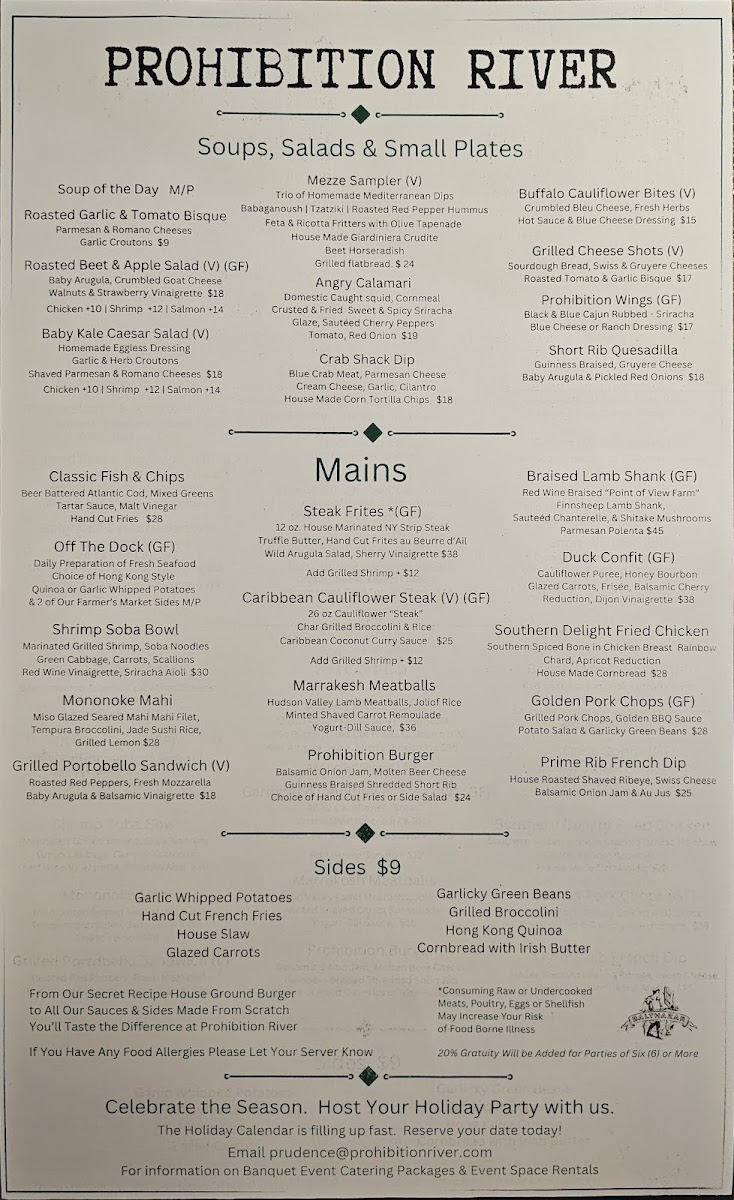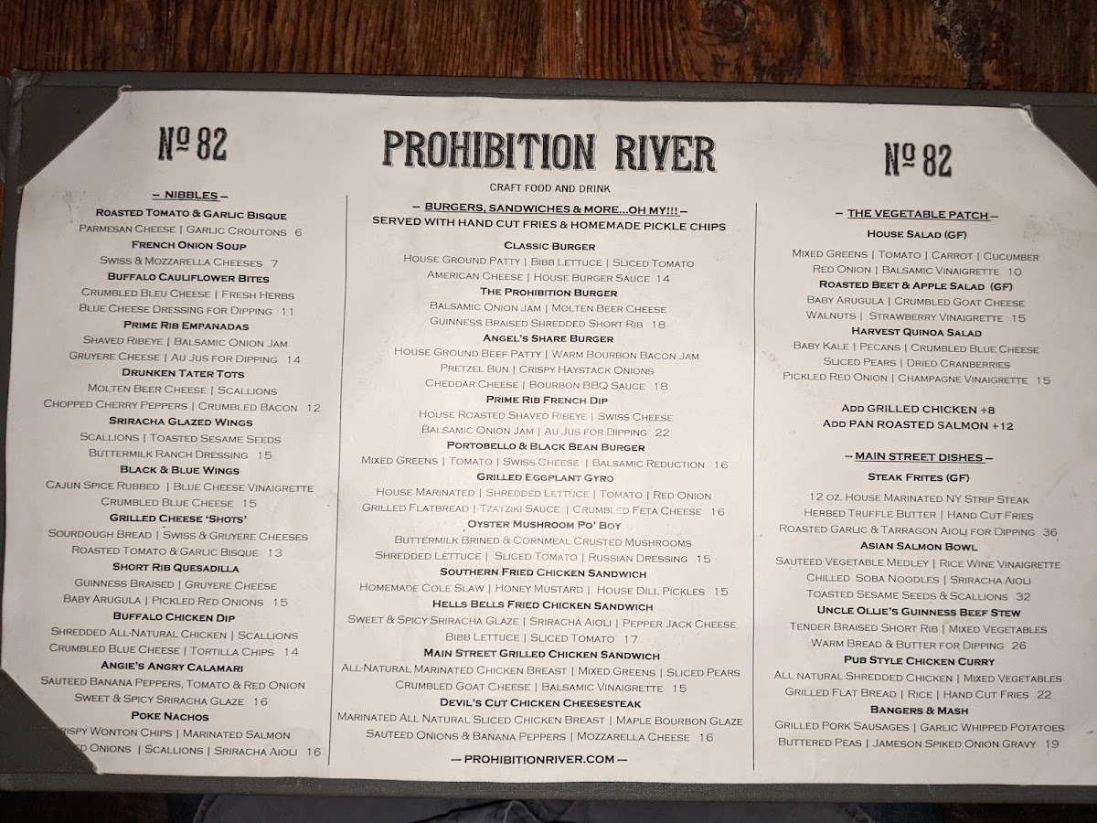 The menu at Prohibition River offers a relaxed yet thoughtfully curated selection of classic American dishes and inventive bar fare. Whether you’re dropping in for a casual bite, a comforting meal after a day out, or an enjoyable evening with friends, the food and drinks complement the warm, inviting atmosphere perfectly.